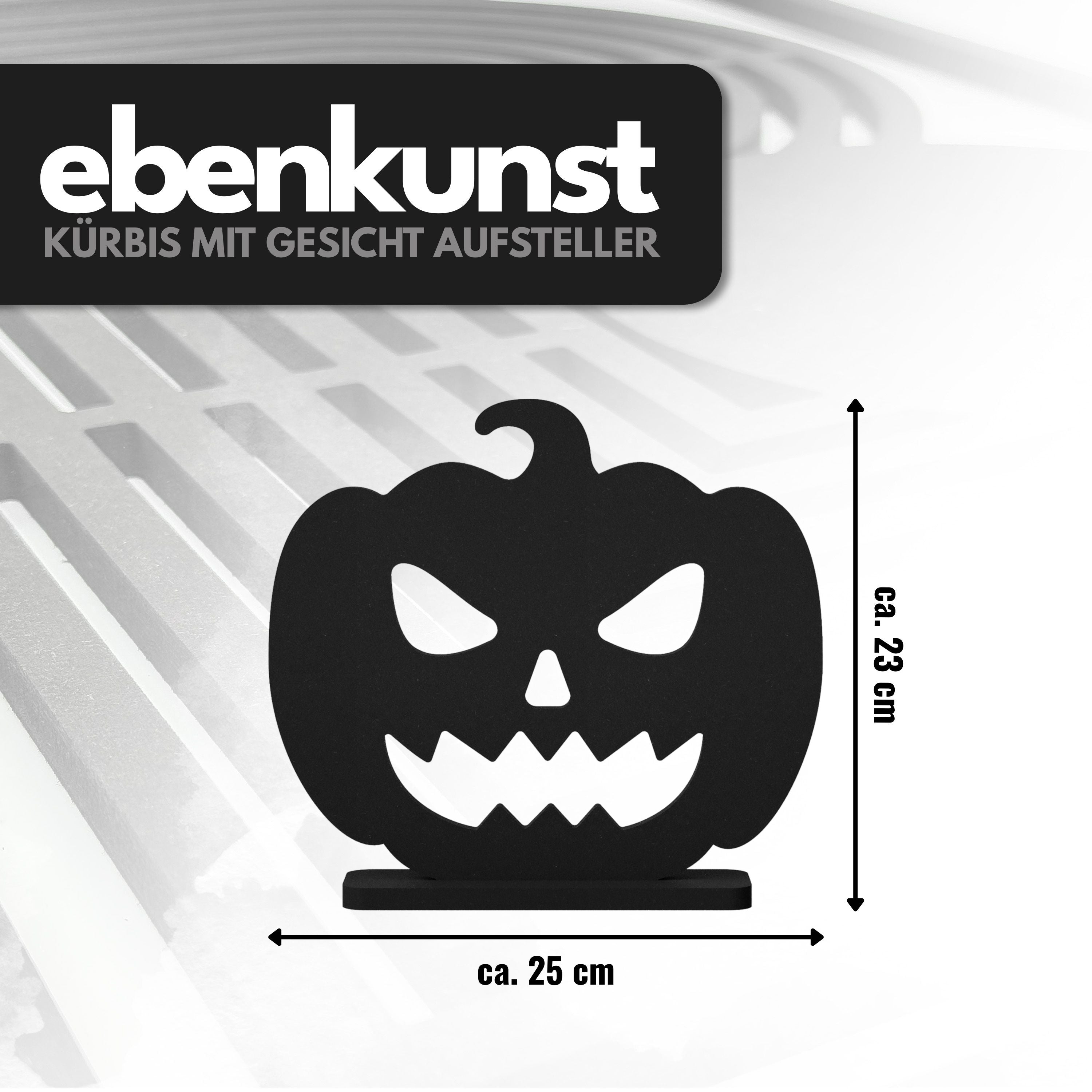 Design: Kürbisgesicht-Silhouette auf stabilem, schwarzem Sockel.