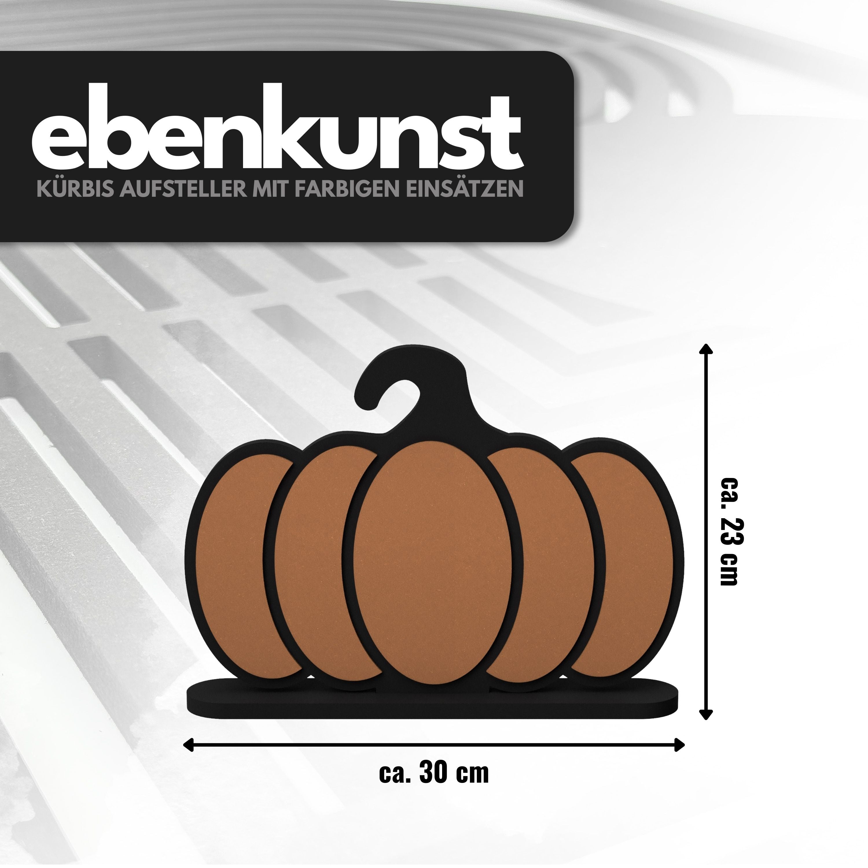 Verleihen Sie Ihrem Zuhause herbstliche Stimmung! Dieser stilvolle Kürbis-Aufsteller kombiniert ein schlichtes, schwarzes Grundgerüst mit farbigen Akzenten, die ihm eine moderne und zugleich gemütliche Ausstrahlung verleihen. Gefertigt aus hochwertigem HDF für die stabile schwarze Silhouette und MDF für die farbigen, orangefarbenen Einsätze, ist dieses Accessoire ein echter Blickfang.