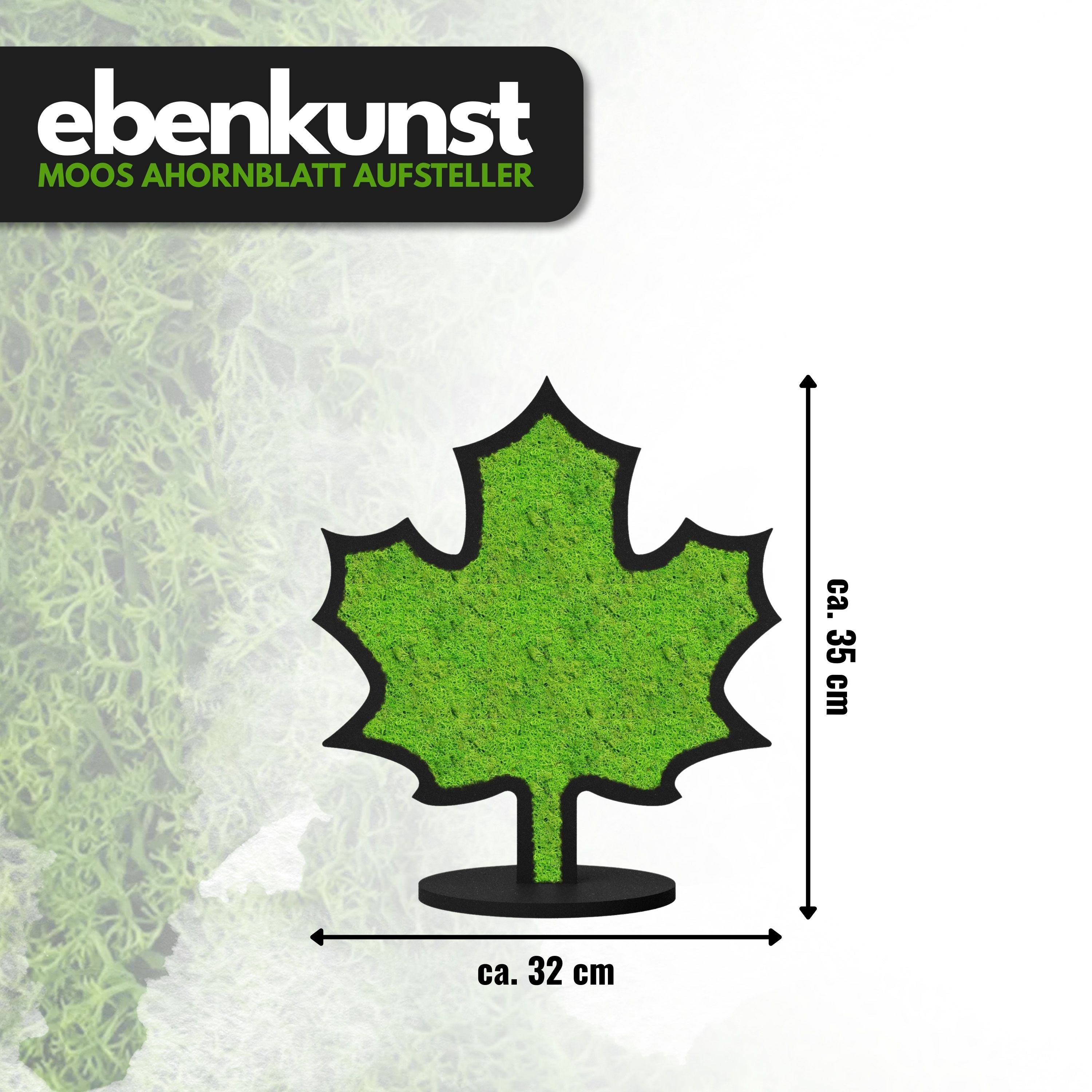 Holen Sie sich ein Stück Natur in Ihr Zuhause! Dieser stilvolle Aufsteller in Form eines Ahornblattes ist ein besonderer Blickfang für jeden Raum. Der Aufsteller besteht aus robustem HDF und ist mit echtem, konserviertem Islandmoos beklebt, das seine natürliche Frische und Farbe behält – ganz ohne Pflege.