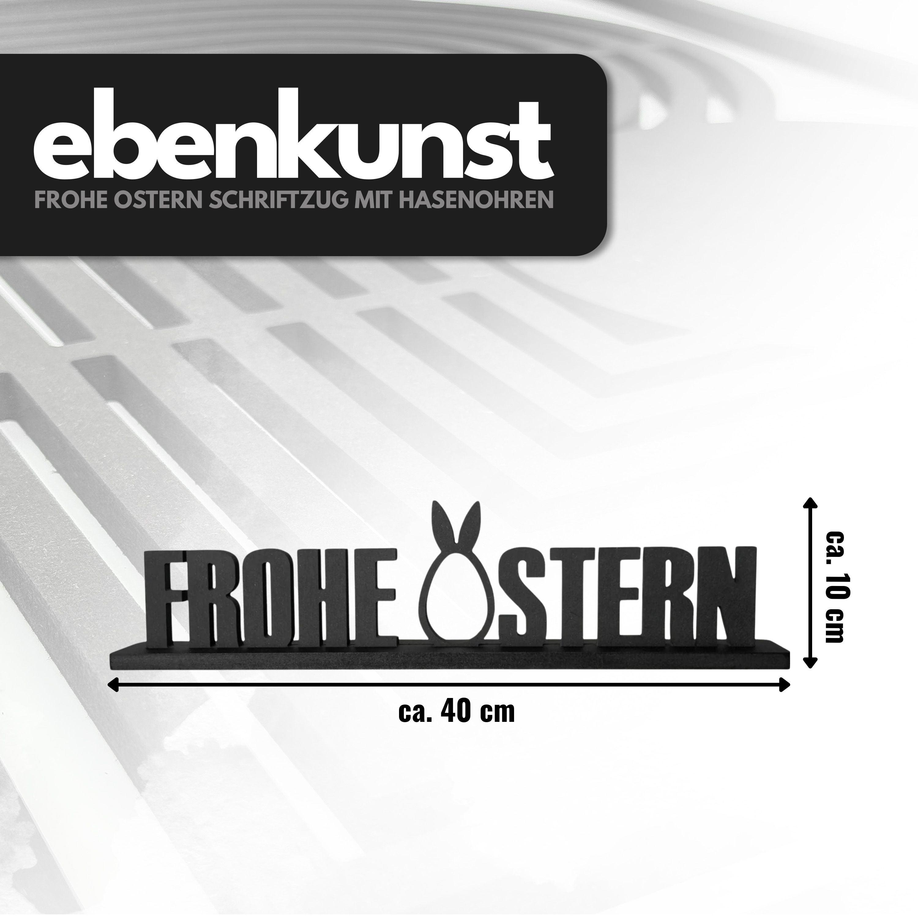 Verleihen Sie Ihrem Zuhause eine frühlingshafte Note mit dem Frohe Ostern Schriftzug mit Hasenohren – ein liebevolles Highlight für Ihre Osterzeit!