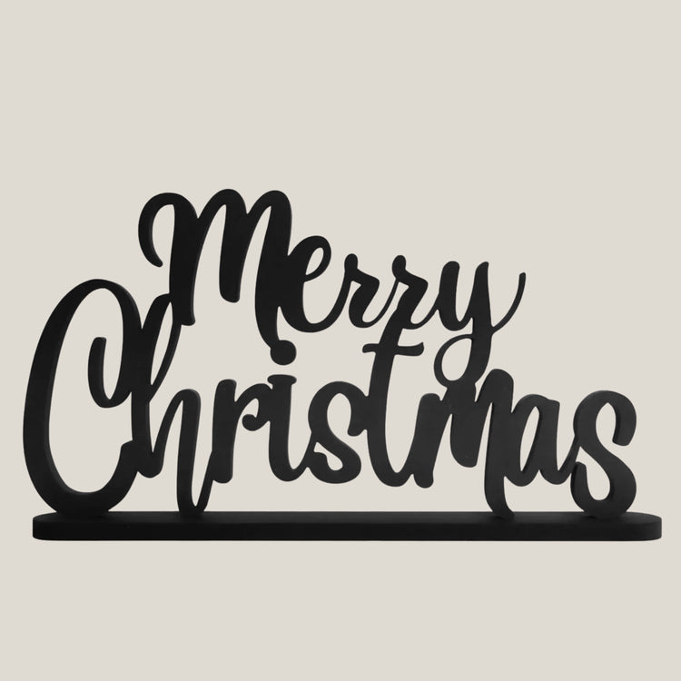 Bereite dich auf die schönste Zeit des Jahres vor mit der stilvollen Aufstelldeko "Merry Christmas". Der elegante Schriftzug im freistehenden Design bringt weihnachtliche Freude in jedes Zuhause und eignet sich perfekt als festlicher Blickfang auf dem Tisch, Regal oder der Fensterbank. Die geschwungene Schrift und das minimalistische Design verleihen deiner Weihnachtsdekoration einen modernen, aber klassischen Charme.
