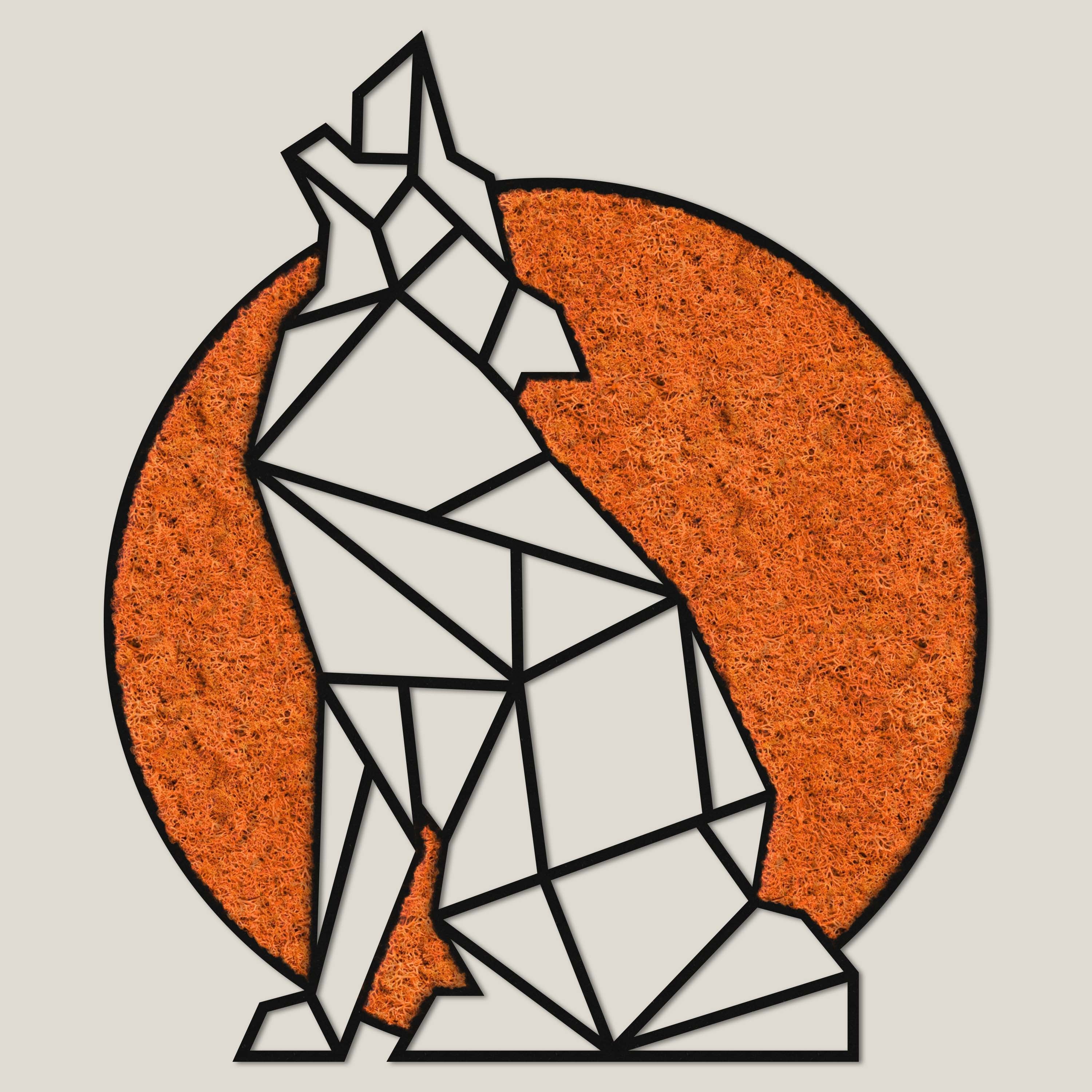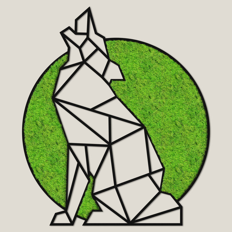 Bringe die Wildnis in dein Zuhause mit unserem atemberaubenden Moosbild "Wolf". Dieses dekorative Wandbild kombiniert die natürliche Schönheit von konserviertem Moos mit einem modernen, geometrischen Design, das die Silhouette eines heulenden Wolfs darstellt. Ideal für Naturliebhaber und alle, die ein starkes, stilvolles Statement in ihrer Inneneinrichtung setzen möchten.