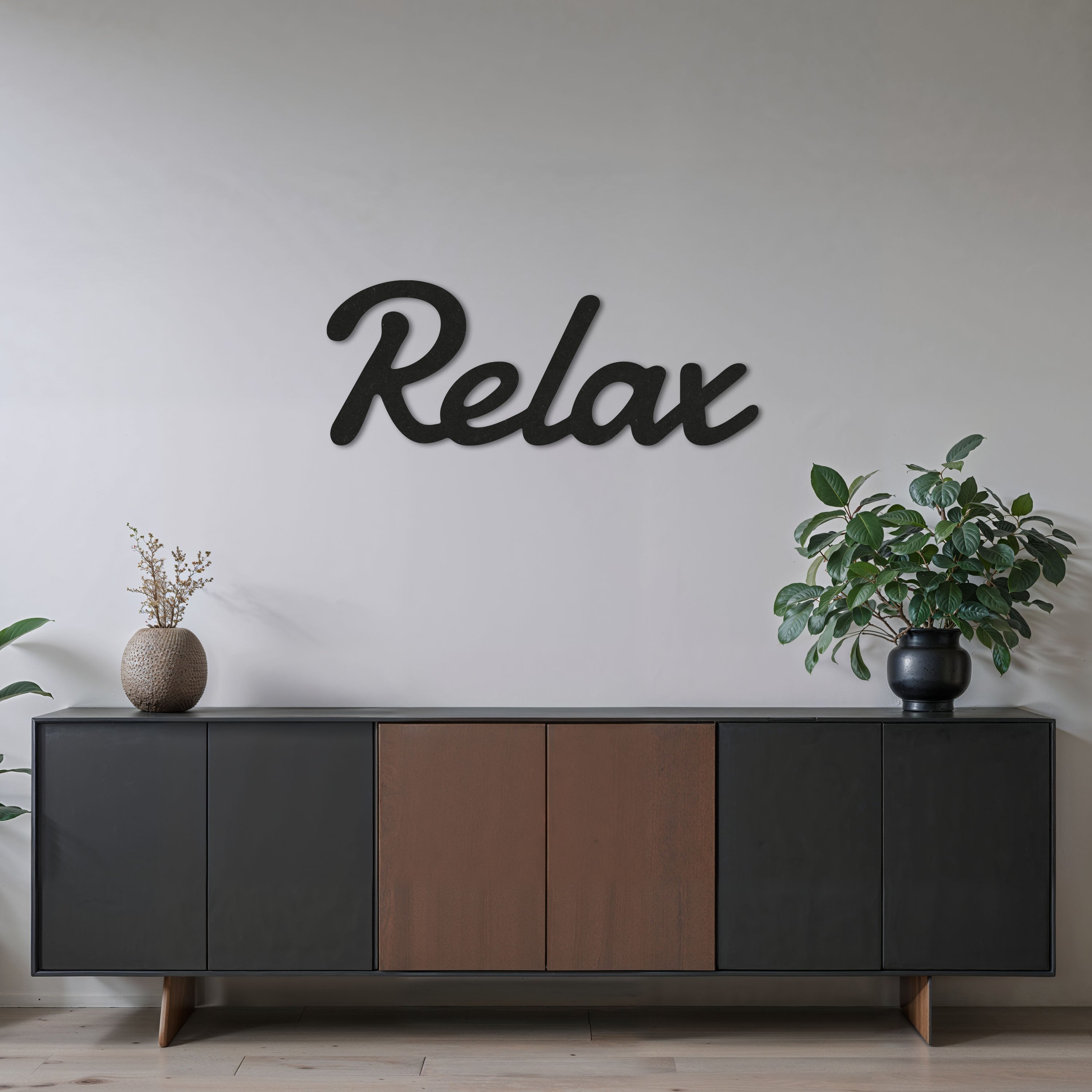 Wanddeko Schriftzug „Relax“ – Modernes Statement für Ruhe und Wohlgefühl