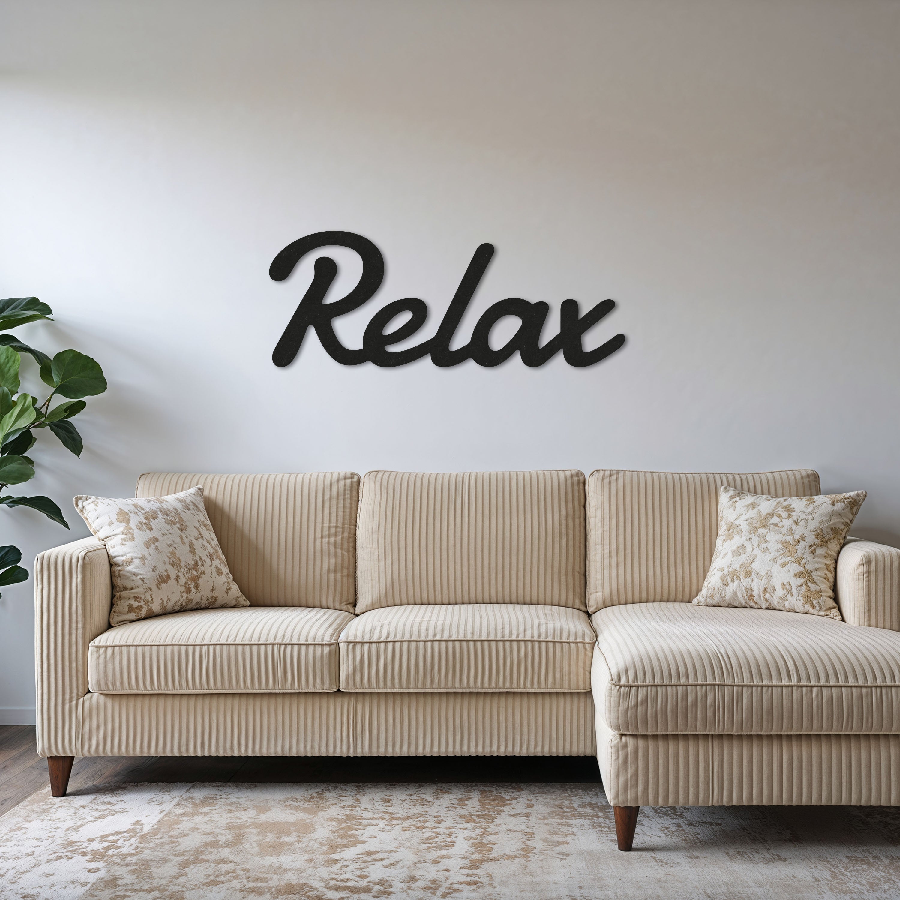 Mit dem „Relax“ Schriftzug setzt du einen stilvollen Akzent für Ruhe, Balance und dein persönliches Wohlfühl-Zuhause.