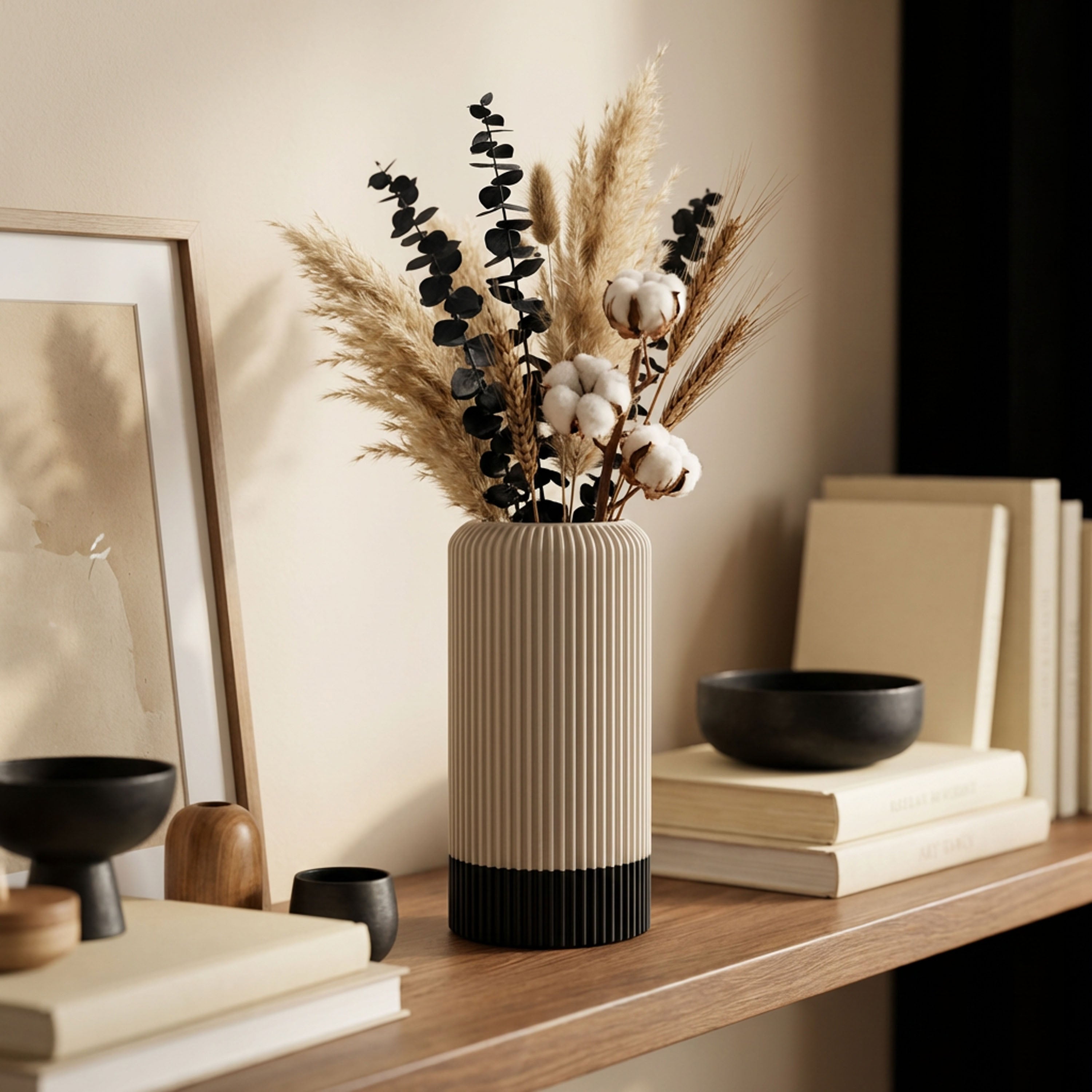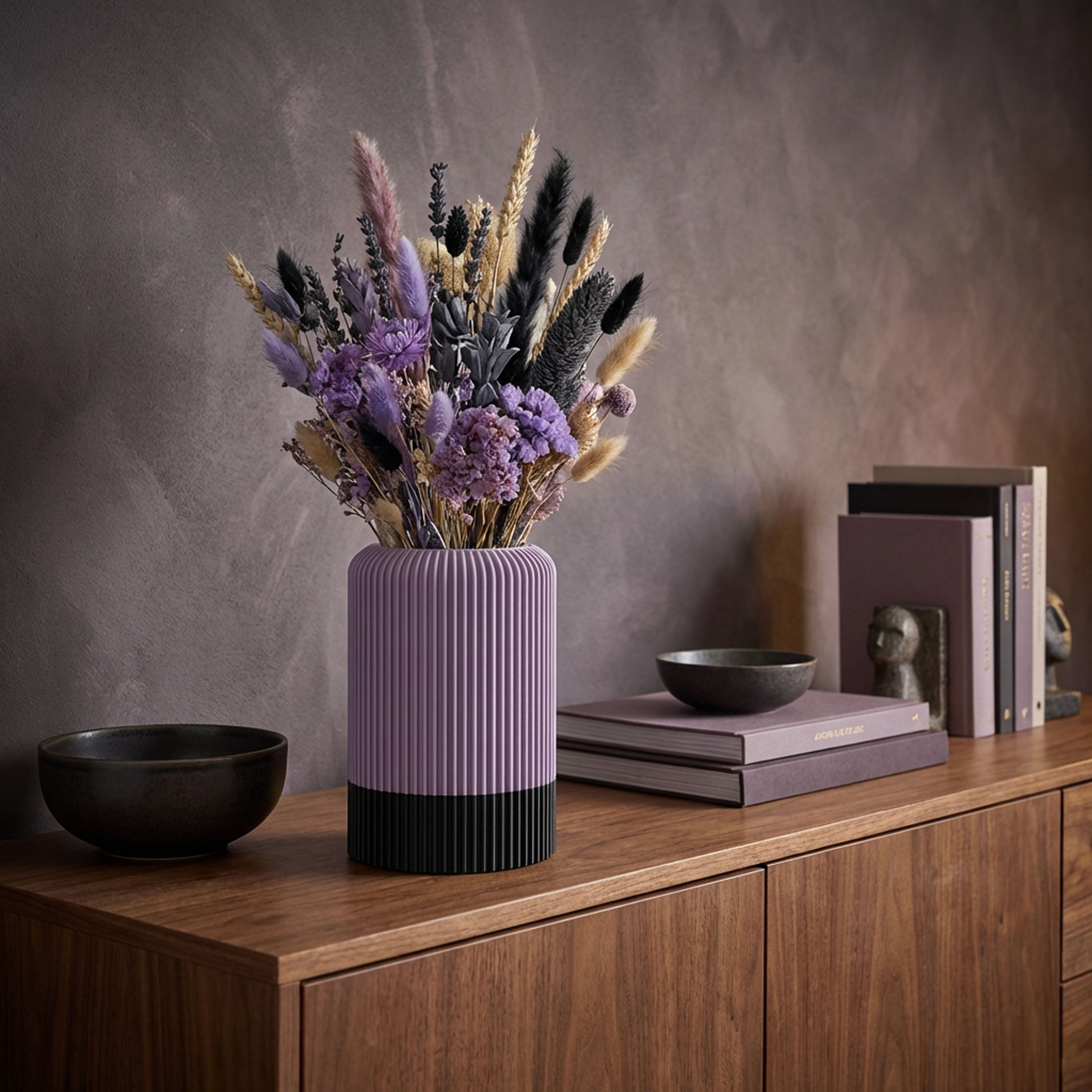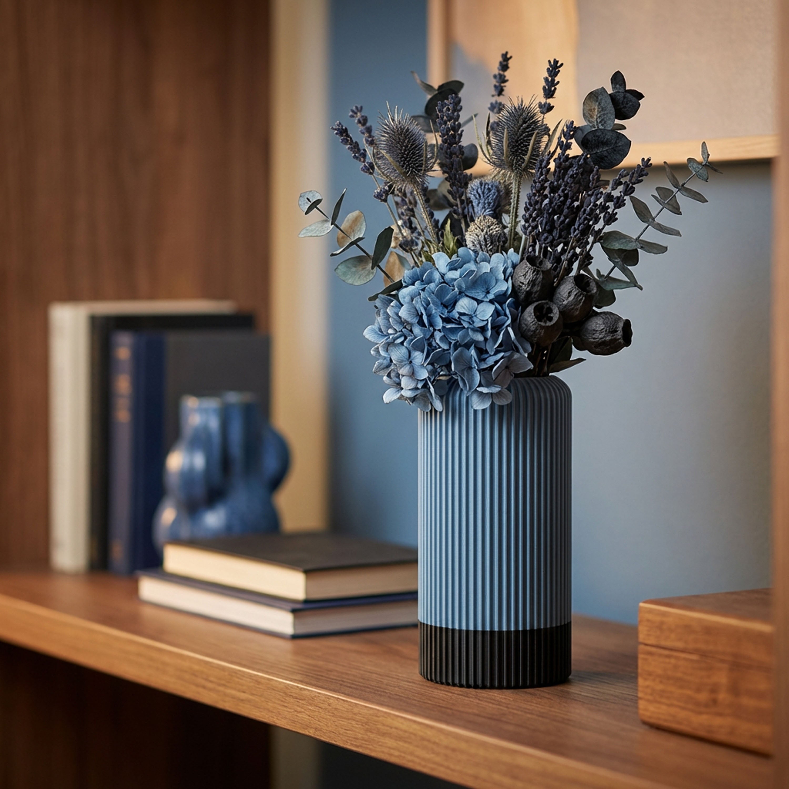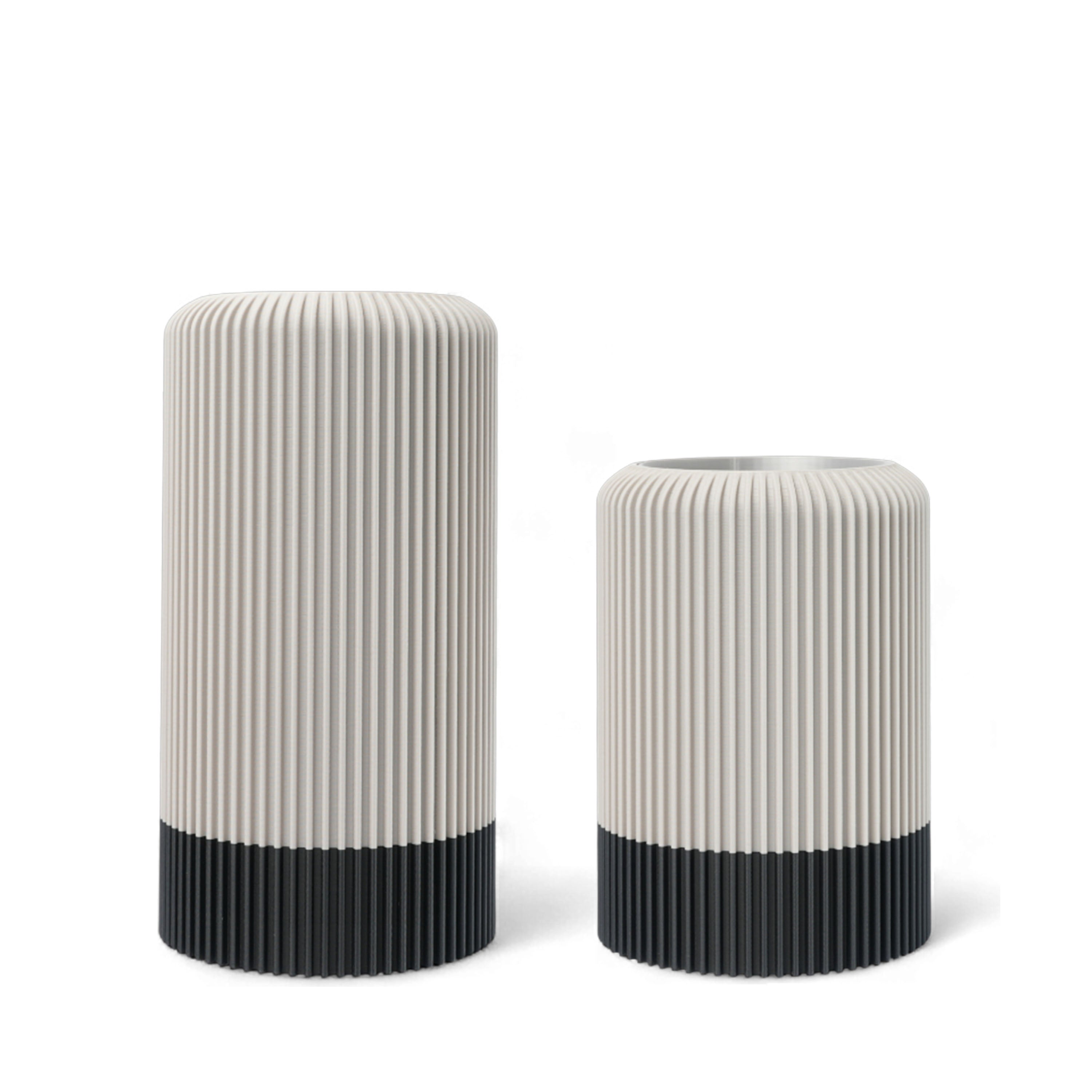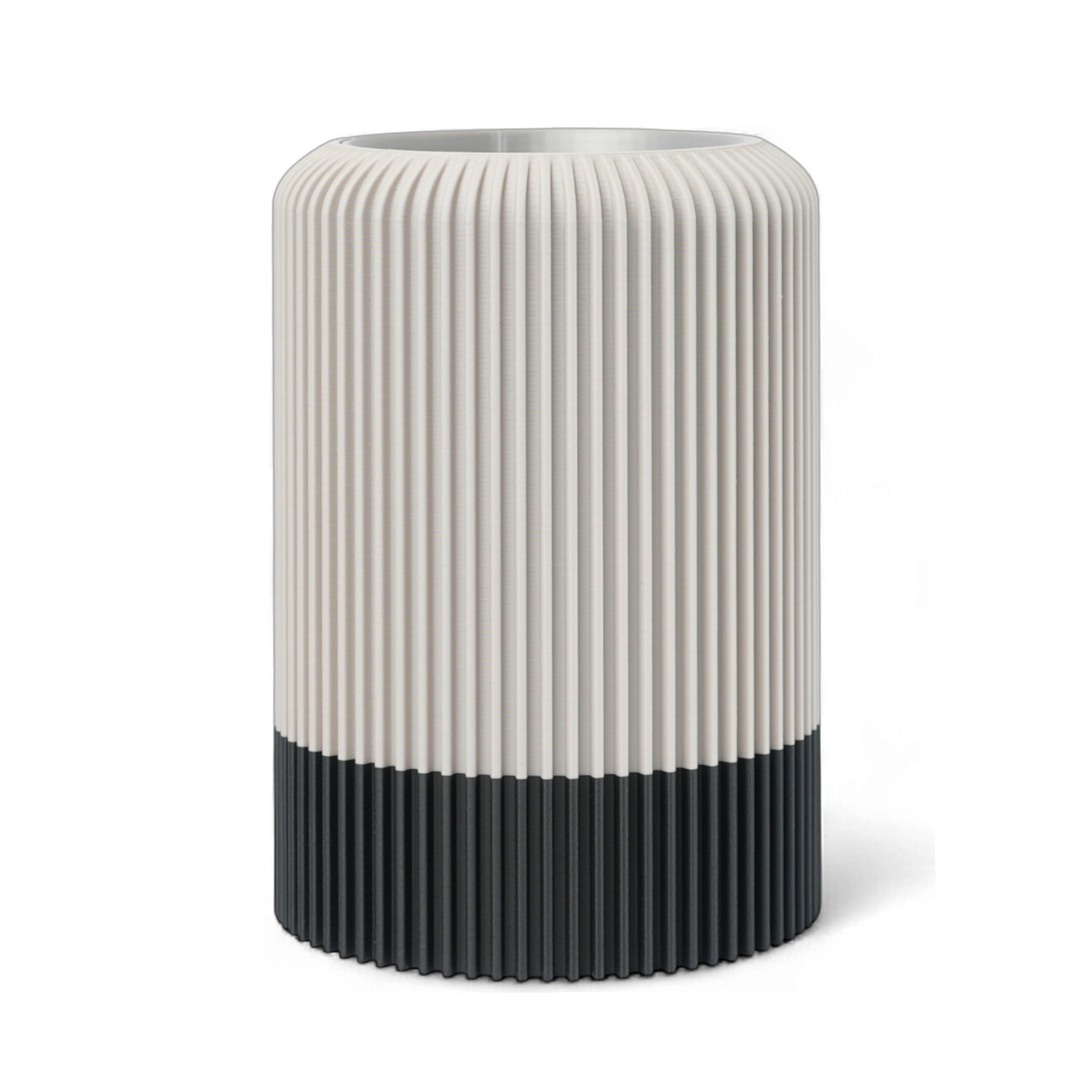 Die Vase „Vertura“ bringt architektonische Ruhe in dein Zuhause. Ihr fein gekanneltes Profil und die elegante Zweifarbigkeit setzen einen klaren Akzent – grafisch, modern, zeitlos. 3D-gedruckt aus langlebigem PLA, einem umweltfreundlichen Biokunststoff, überzeugt „Vertura“ mit matter Oberfläche und ruhigem, standfestem Auftritt.