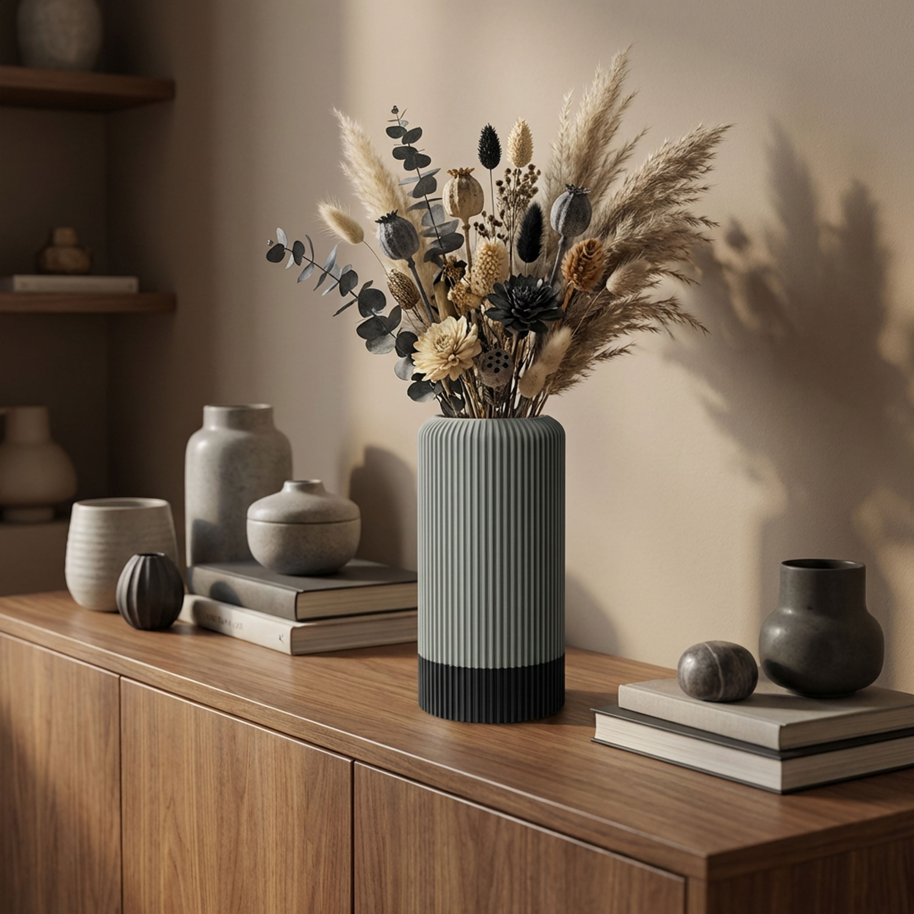 Bringe mit unseren 3D-gedruckten Vasen ein stilvolles Statement in dein Zuhause – natürlich, funktional und einzigartig.